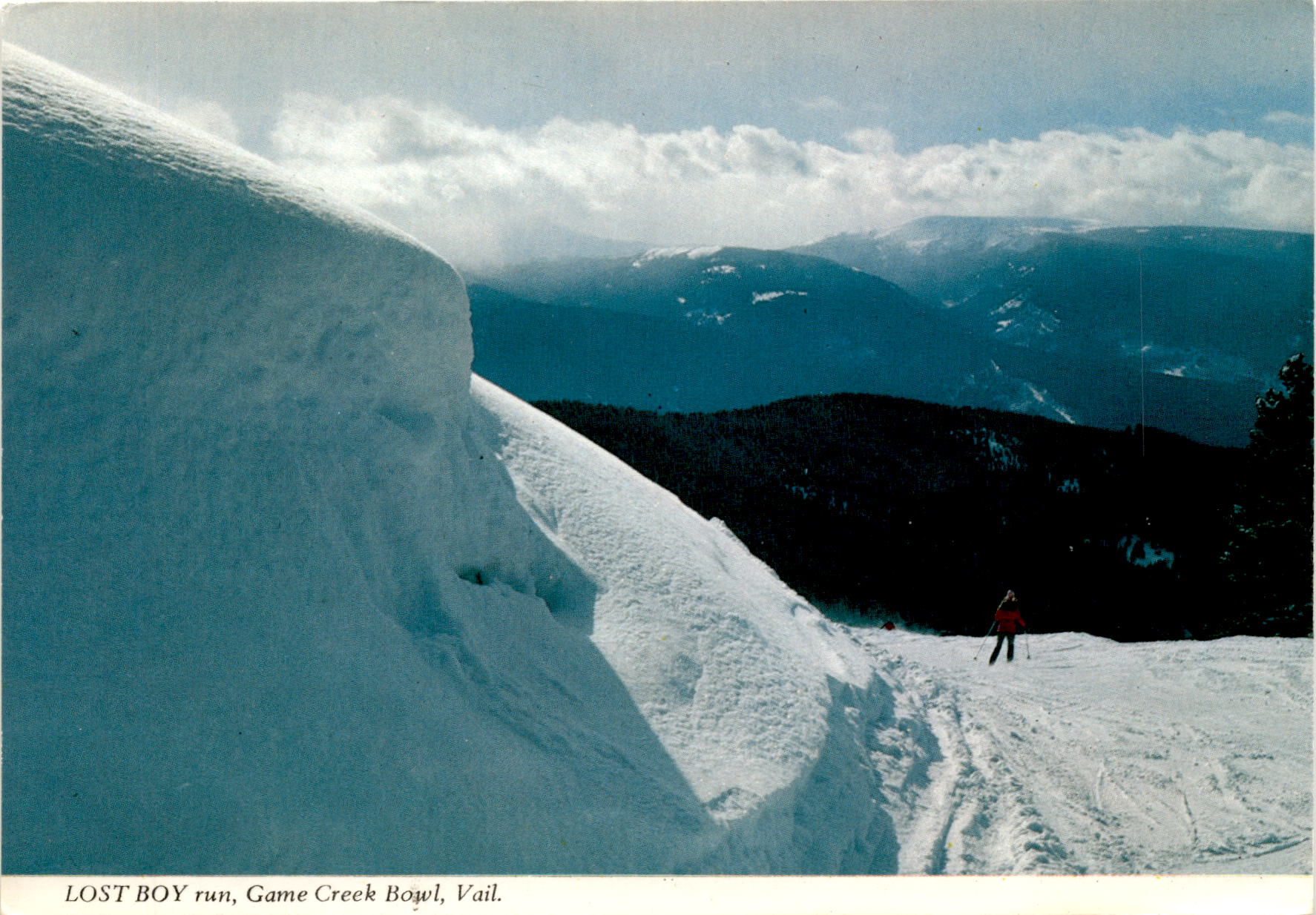 I recently came across a postcard featuring a stunning view of the LOST BOY run in Game Creek Bowl, Vail. The image, captured by R.C. Bishop, showcases the picturesque snow-covered slopes of Vail, Colorado. The postcard is a beautiful reminder of the winter wonderland that can be found in the Rocky Mountains.The back of the postcard provides more information about the photographer, R.C. Bishop, who published the image from Grand Junction, Colorado. The postcard was printed in Spain, adding an international touch to this piece of memorabilia. It’s fascinating to think about the journey this postcard took before landing in my hands, connecting me to a faraway destination through a simple piece of paper.As I hold this postcard in my hands, I can’t help but imagine the thrill of skiing down the LOST BOY run in Game Creek Bowl. The postcard serves as a memento of the adventures and memories that can be made in the mountains. It’s a small piece of art that captures the beauty and excitement of winter sports, making me eager to plan my next ski trip to Vail.