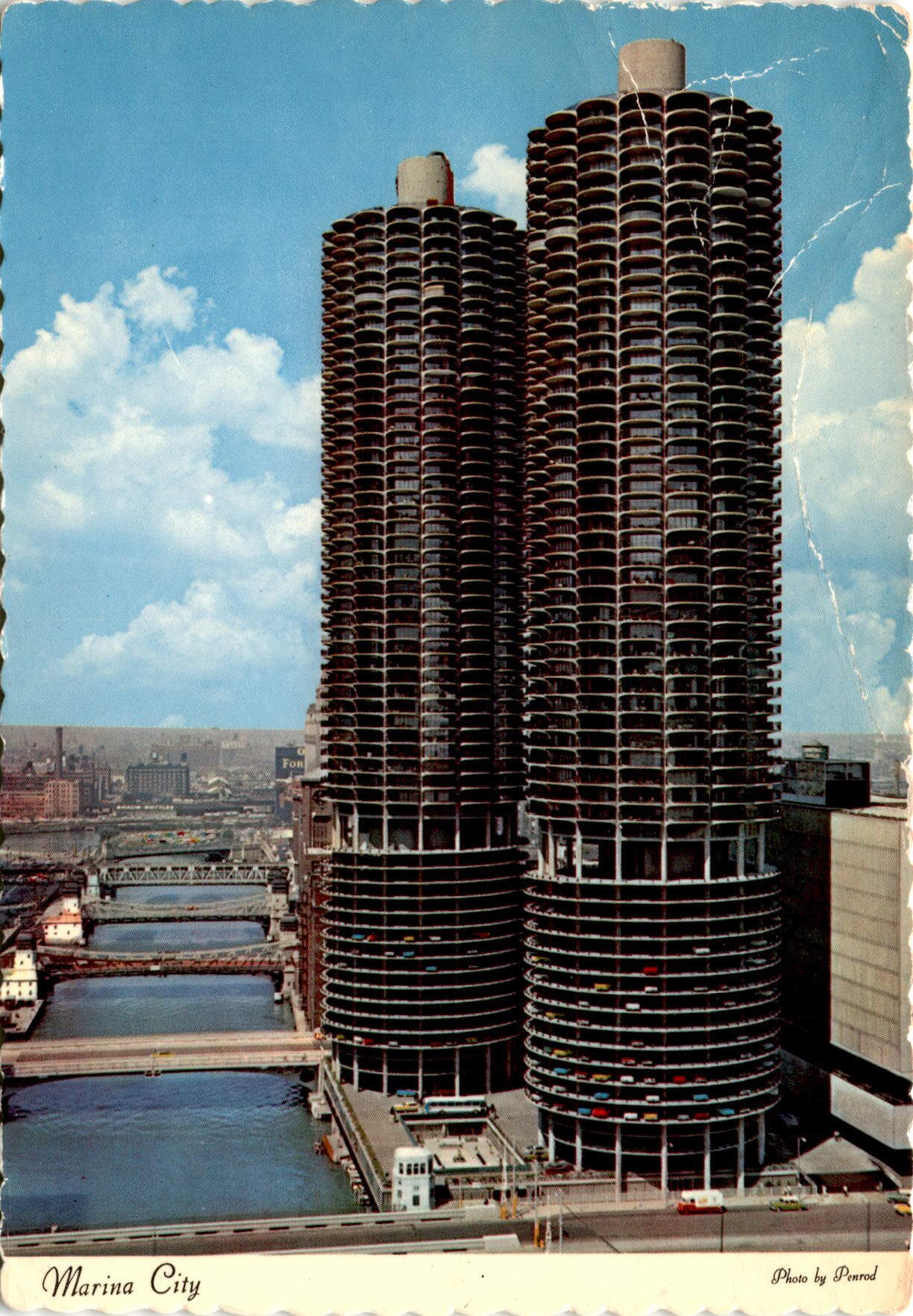 The postcard depicts Marina City, a stunning architectural marvel along the Chicago River. The 60-story residential towers are scalloped with balconies, making them a sight to behold. The lower floors of the towers serve as a parking ramp, while at water level, there is a marina with slips to accommodate 700 boats. The postcard captures the beauty and uniqueness of Marina City, which has been dubbed as Chicago’s most amazing physical structure.The message on the back of the postcard provides a glimpse into the sender’s travels. They mention waiting for a ride to take them to Grand Rapids and then on to Detroit. The sender describes their pleasant journey from Fargo to Minneapolis, where they enjoyed seeing the Lake Country again. They also mention making phone calls to friends during their trip, highlighting the importance of staying connected even while on the road.Overall, the postcard serves as a snapshot of a traveler’s journey and the sights they encountered along the way. Marina City’s iconic towers stand out in the image, showcasing the unique architecture of Chicago. The personal message on the back adds a touch of nostalgia and connection to the postcard, making it a special keepsake for both the sender and the recipient.