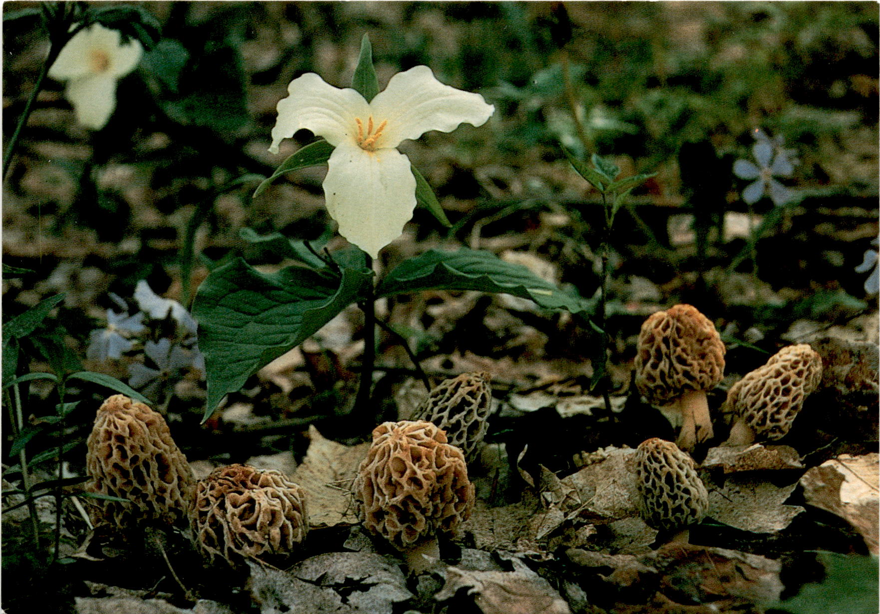 Michigan, morel mushroom, wooded areas, wildflowers, OPENROD/HIAWATHA Postcard