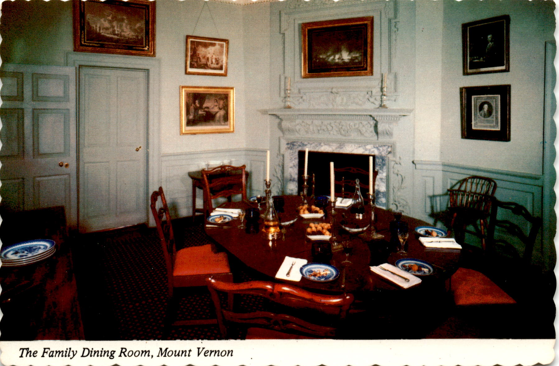 The postcard features a beautiful image of The Family Dining Room at Mount Vernon, a historic site in Virginia owned and maintained by The Mount Vernon Ladies Association of the Union. Founded in 1853, the association is dedicated to preserving the home and tomb of George Washington. The photo on the postcard, courtesy of the Mount Vernon Ladies Association, showcases the elegant and timeless design of the dining room.The back of the postcard provides additional information about Mount Vernon, including the address and the publisher, Mike Roberts Color Productions. The postcard is part of the Continental card series and was printed in Emeryville, California. The image on the front captures the essence of Mount Vernon and serves as a reminder of the rich history and heritage of the site.Receiving a postcard like this from Mount Vernon is a special treat for history enthusiasts and fans of George Washington. The postcard not only showcases the beauty of The Family Dining Room but also highlights the important work of The Mount Vernon Ladies Association in preserving this historic landmark. Whether displayed in a collection or sent to a friend, this postcard is a wonderful memento of a visit to Mount Vernon.