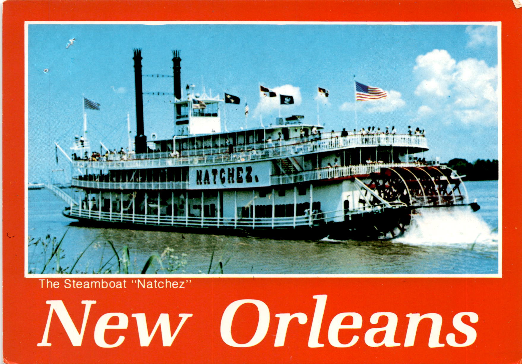 The postcard features a stunning image of the steamboat Natchez in New Orleans. The front of the postcard showcases the iconic boat, while the back provides information on how to order reprints of the photo. The schedule for the boat’s trips throughout the day is listed, along with details on how to request copies of the photo.The postcard serves as a memento of a visit to New Orleans and a ride on the historic Natchez steamboat. The back of the postcard includes contact information for ordering reprints of the photo, allowing visitors to take home a piece of their experience on the boat. The detailed schedule of the boat’s trips offers a glimpse into the bustling activity on the Mississippi River.Overall, the postcard captures the charm and nostalgia of a steamboat ride in New Orleans. The image of the Natchez evokes a sense of history and tradition, while the practical information on the back allows visitors to preserve their memories of the experience. Whether it’s a daytime cruise or an evening trip, the postcard serves as a reminder of the unique and memorable journey on the iconic steamboat.