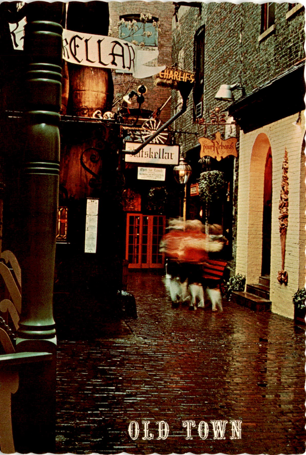The postcard captures the charm and excitement of Piper’s Alley in Old Town, Chicago. The Victorian quiet of a cobblestone courtyard is juxtaposed with the unusual wares of shops and different cuisines of restaurants, creating a unique and vibrant atmosphere. Behind the red, stained-glass doors, visitors can enjoy the gaslight scene of an old-world street with its many-colored, fancy-façaded emporiums.The photo on the postcard, taken by Dave Maenza, perfectly encapsulates the historic and lively feel of Piper’s Alley. The image showcases the beauty of the area, with its old-world charm and bustling energy. The postcard is a wonderful memento for anyone who has visited or wants to experience the magic of Old Town in Chicago.Overall, the postcard is a delightful snapshot of Piper’s Alley, inviting viewers to imagine themselves strolling through the cobblestone courtyard and exploring the unique shops and restaurants. The combination of Victorian architecture and modern amenities creates a one-of-a-kind experience that is sure to leave a lasting impression on anyone who visits. Whether you’re a local or a tourist, Piper’s Alley is a must-see destination in Old Town, Chicago.