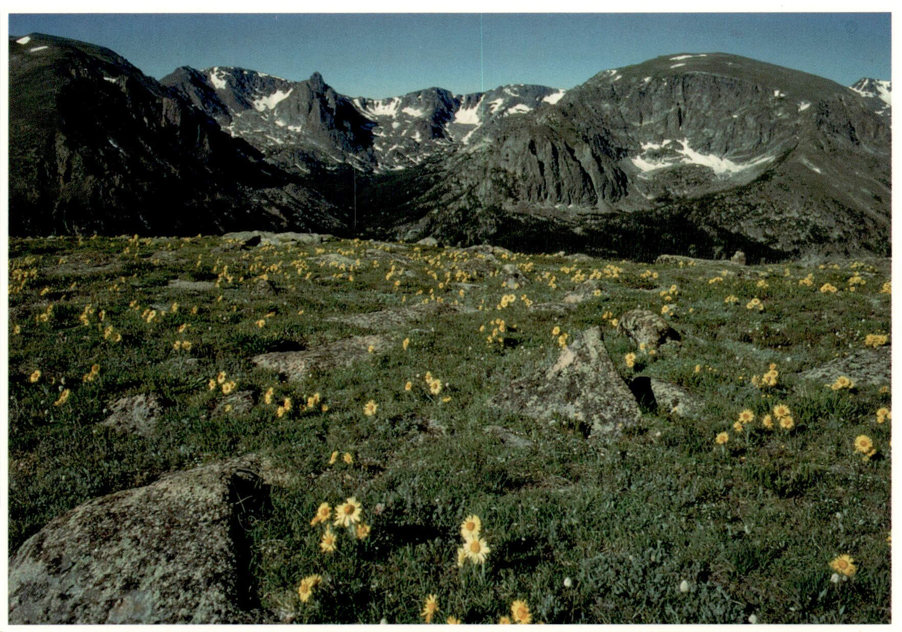 The postcard showcases the stunning beauty of the Rocky Mountains, specifically highlighting the tundra wildflowers along Trail Ridge Road. The Alpine tundra is home to a variety of wildflowers, including the Rydbergia, also known as the Old-Man-of-the-Mountain. The photo captured by Sheridan Steele in 1992 perfectly captures the vibrant colors and delicate beauty of these wildflowers during the short summer growing season.The Rocky Mountain Nature Association and Rocky Mountain National Park are credited for the copyright of the postcard, emphasizing the importance of preserving and appreciating the natural beauty of the area. The ISBN number provided on the postcard allows for easy identification and reference for those interested in learning more about the Rocky Mountains and the tundra wildflowers that bloom there. The postcard serves as a reminder of the unique and diverse ecosystems that can be found in national parks like Rocky Mountain National Park.Overall, the postcard serves as a visual representation of the breathtaking landscapes and flora that can be found in the Rocky Mountains. It captures a moment in time, showcasing the beauty of the tundra wildflowers that bloom along Trail Ridge Road. The postcard is not only a beautiful memento for those who have visited the area, but also a reminder of the importance of preserving and protecting these natural wonders for future generations to enjoy.