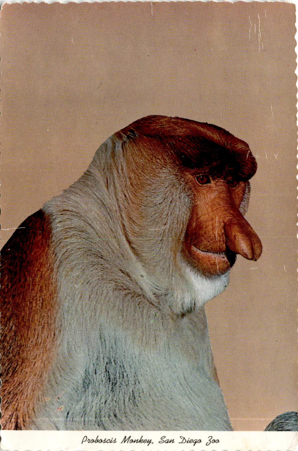 The postcard features a picture of a Proboscis Monkey from the San Diego Zoo, with a handwritten note on the back dated October 20, 1978. The sender, who appears to be on a trip, describes their visit to the zoo and mentions seeing koala bears and an ugly monkey. They also mention taking a tour of the city and enjoying a flight with a great view of the white Sands, Painted Desert, and meteor Crater.The postcard provides a glimpse into the sender’s travels and experiences, offering a personal touch with the handwritten note. It captures a moment in time, showcasing the excitement of exploring new places and encountering different wildlife. The mention of the Proboscis Monkey adds a unique and memorable element to the sender’s trip to the San Diego Zoo.Overall, the postcard serves as a memento of the sender’s journey and serves as a reminder of the beauty and diversity of nature. It highlights the joy of travel and the wonder of discovering new sights and experiences. The handwritten note adds a personal touch, making the postcard a cherished keepsake that captures a special moment in time.