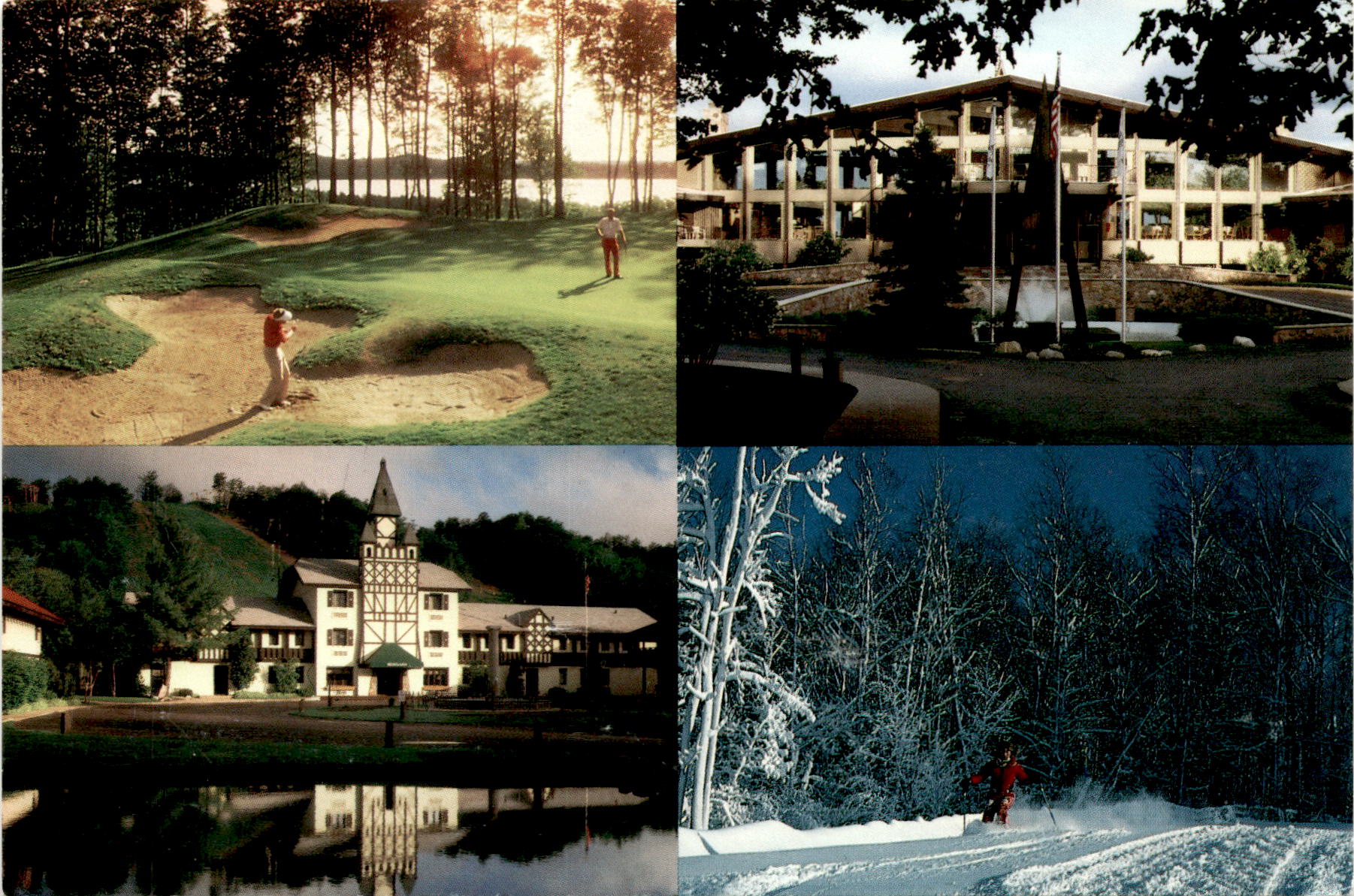 The postcard showcases the amenities and activities available at Shanty Creek and Schuss Mountain in Bellaire, Michigan. With 28 downhill ski slopes, 35 km of connecting cross-country trails, and 3 championship golf courses, there is no shortage of outdoor activities for guests to enjoy. The resort also offers 640 rooms, suites, and condominiums, indoor and outdoor pools, restaurants, shopping, a conference center, tennis courts, and a health club.As a Club Resort, Shanty Creek and Schuss Mountain pride themselves on treating every guest as a member. This personalized approach ensures that visitors have a memorable and enjoyable experience during their stay. Whether guests are looking to hit the slopes, play a round of golf, or simply relax by the pool, there is something for everyone to enjoy at this resort.For those looking for a getaway that offers a mix of outdoor adventure and relaxation, Shanty Creek and Schuss Mountain in Bellaire, Michigan are the perfect destinations. With a wide range of amenities and activities available, guests can create their own unique vacation experience. Whether visiting for a weekend getaway or a longer stay, this Club Resort promises a memorable and enjoyable stay for all who visit.