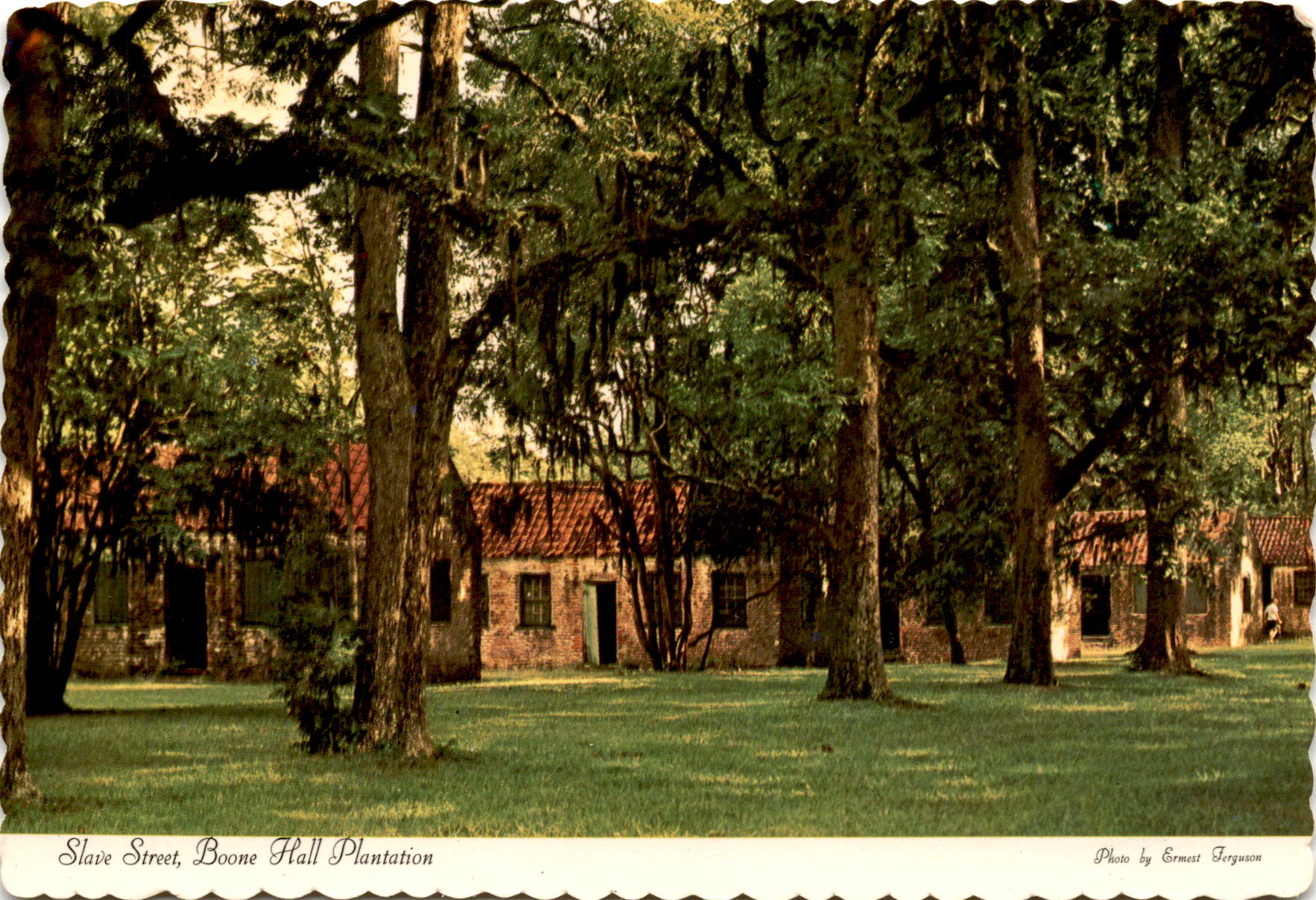 Back of PostcardThe postcard depicts a historic site known as Slave Street at Boone Hall Plantation near Charleston, South Carolina. The image, captured by photographer Ermest Ferguson, showcases a portion of the nine original slave cabins that make up Slave Street. These cabins, constructed of handmade brick around 1750, are the only original Slave Street still standing in the Southeast. Visitors to Boone Hall Plantation can explore these cabins and other original buildings to get a glimpse of plantation life before the Civil War.The postcard was made by Dexter Press in West Nyack, New York, and is part of a series highlighting the historical significance of Boone Hall Plantation. The plantation offers a unique opportunity for visitors to learn about the lives of enslaved individuals who lived and worked on the property. The image on the postcard serves as a reminder of the harsh realities of slavery in America’s past, while also honoring the resilience and strength of those who endured such hardships.As a piece of history captured on a postcard, Slave Street at Boone Hall Plantation serves as a tangible reminder of the importance of preserving and sharing stories from the past. The image and description on the postcard invite viewers to reflect on the legacy of slavery in the United States and the ongoing efforts to educate and commemorate the experiences of enslaved individuals. By sharing this postcard and its message, we can continue to honor the lives and stories of those who were once enslaved at Boone Hall Plantation.