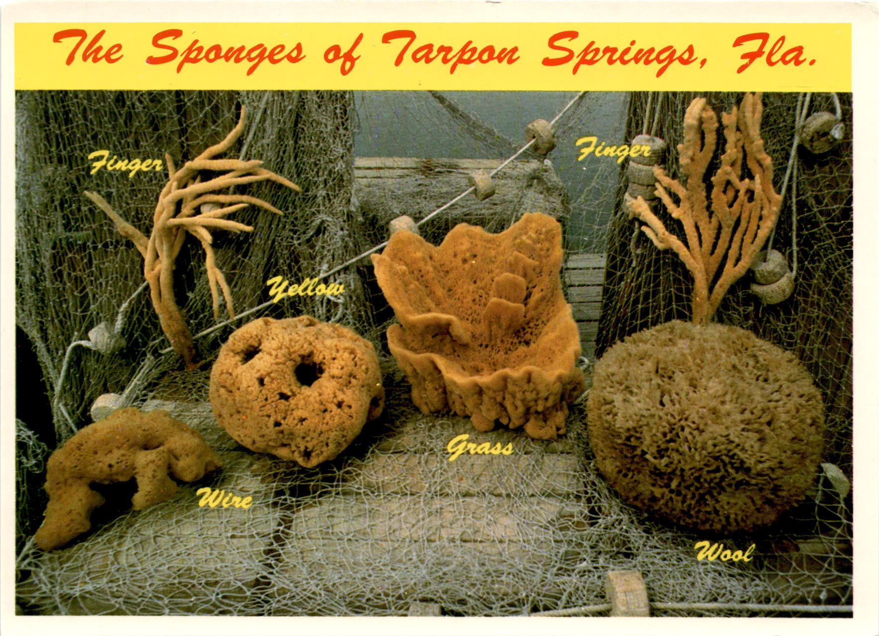 The front of the postcard showcases the beautiful sponges of Tarpon Springs, Florida. The image features various types of sponges, each unique in color and texture. The vibrant colors of the sponges pop against the blue waters of the Gulf, creating a stunning visual.On the back of the postcard, there is information about the St. Nicholas Boat Line and their sponge diving exhibition in Tarpon Springs. Visitors can experience the art of sponge diving firsthand and learn about the history and importance of sponges in the area. The contact information for the boat line is provided for those interested in booking a tour.Overall, this postcard captures the essence of Tarpon Springs and its rich sponge diving heritage. It serves as a reminder of the beauty and uniqueness of this coastal town in Florida. Whether you’re a tourist or a local, this postcard is a great way to share the magic of Tarpon Springs with others.