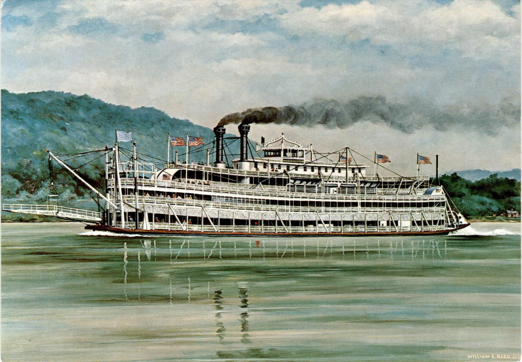 The postcard features a beautiful painting of the popular excursion boat, the William E Reed 3DX, which made its debut in 1921. The boat traveled from town to town, offering matinees and moonlight cruises to its passengers. At night, the boat was illuminated with hundreds of lights, giving it the appearance of a floating birthday cake. The painting captures the charm and nostalgia of this historic vessel.The artist behind the painting, William E. Reed, has expertly captured the essence of the William E Reed 3DX in his artwork. The exclusive distribution of the postcard is handled by Lenharts, a company based in Marietta, Ohio. The postcard is a beautiful memento of a bygone era, showcasing the Richardson Printing Corp. logo from 1973.The postcard serves as a reminder of the simpler times when excursion boats like the William E Reed 3DX were a popular form of entertainment. The painting on the front of the postcard is a testament to the craftsmanship and artistry of William E. Reed, capturing the magic of the boat in its heyday. This postcard is a piece of history that can be cherished and shared for years to come.