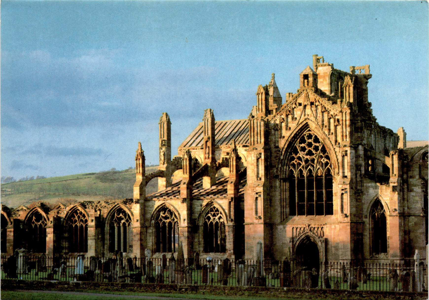The postcard is from Braemar Films Ltd, located in Edinburgh, Scotland. The front features an image of Melrose Abbey. Braemar Films Ltd is a film production company known for producing documentaries, dramas, and other film projects. Melrose Abbey is a historic monastery located in Melrose, Scotland, founded in the 12th century. It is known for its stunning architecture and rich history, making it a popular tourist destination. The postcard includes contact information for Braemar Films