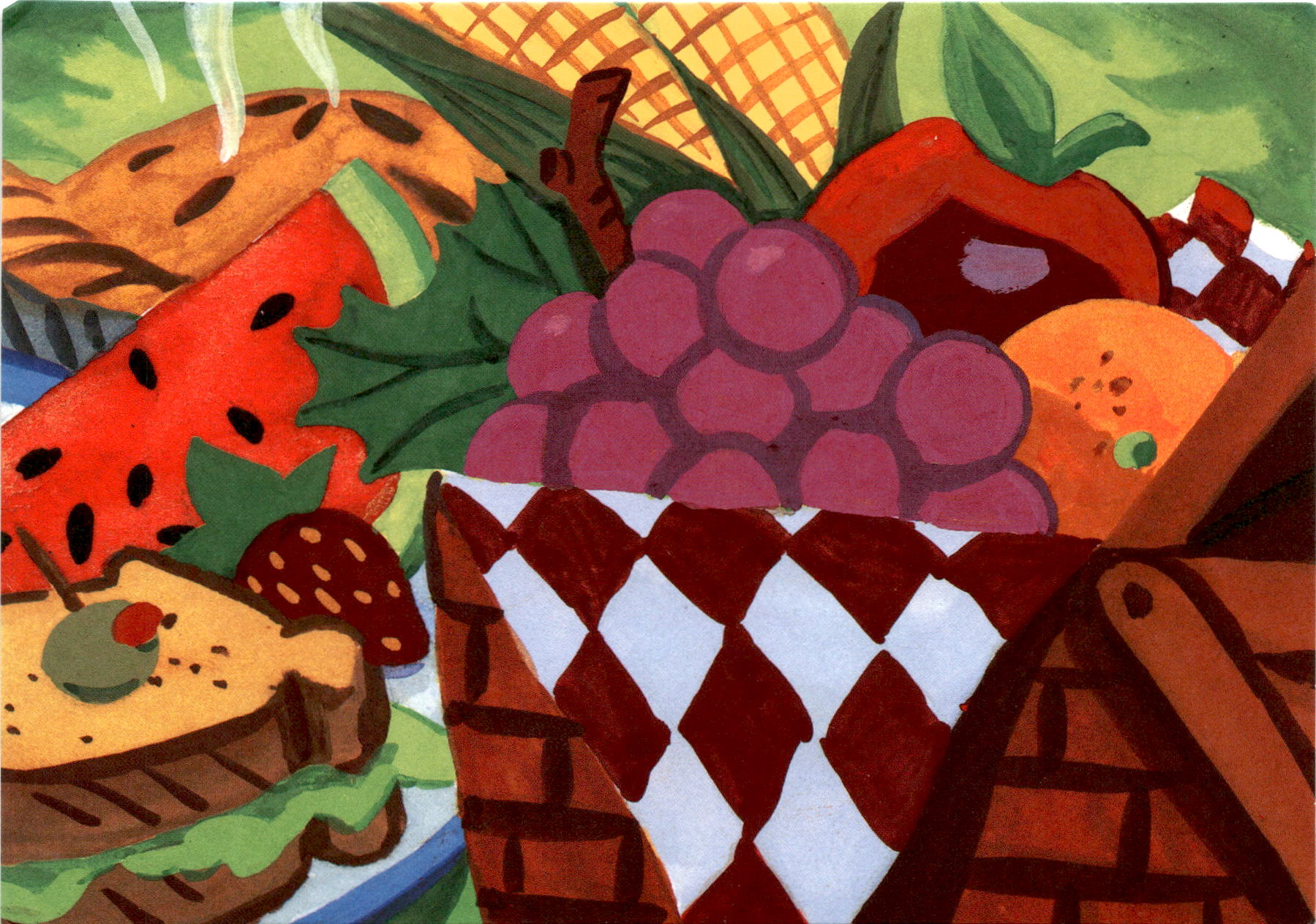 The postcard is an invitation to a party, with details like date, time, and place left blank. It features a colorful design with a stamp and the words PARTY EXPRESS written prominently. The postcard is produced by Hallmark Cards