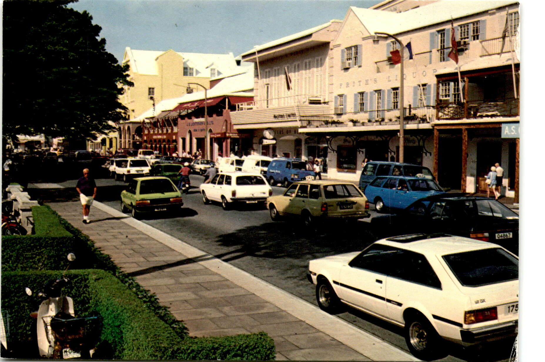 Located in the heart of Hamilton, Bermuda, Front Street is a bustling hub of activity and a popular destination for tourists and locals alike. This postcard, captured by the talented photographer Bill Fraser, showcases the vibrant atmosphere and unique charm of this iconic street.Front Street is lined with colorful buildings, charming