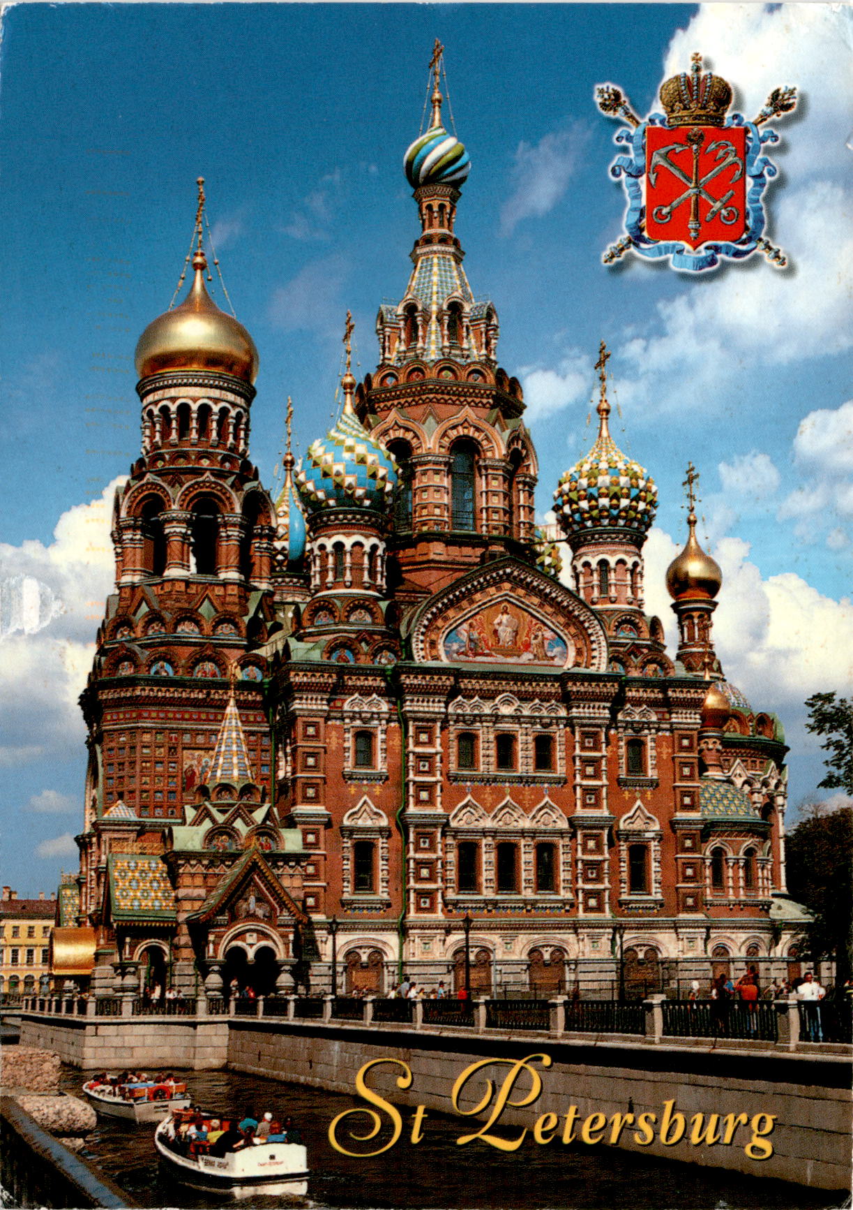 The postcard features the Church of the Savior on Spilled Blood in St. Petersburg, Russia, built between 1883-1907 by architect A. Parland. Also known as the Resurrection of Christ Church, it is a prominent example of Russian architecture with colorful onion domes. The postcard includes greetings from Bill to his mother, expressing regret for missing a church service. The text also mentions historical figures like Avicenna and Ibn Sina, as well as contact information for the publisher. The sender’s address is in Pleasant Hills, Pennsylvania, USA.