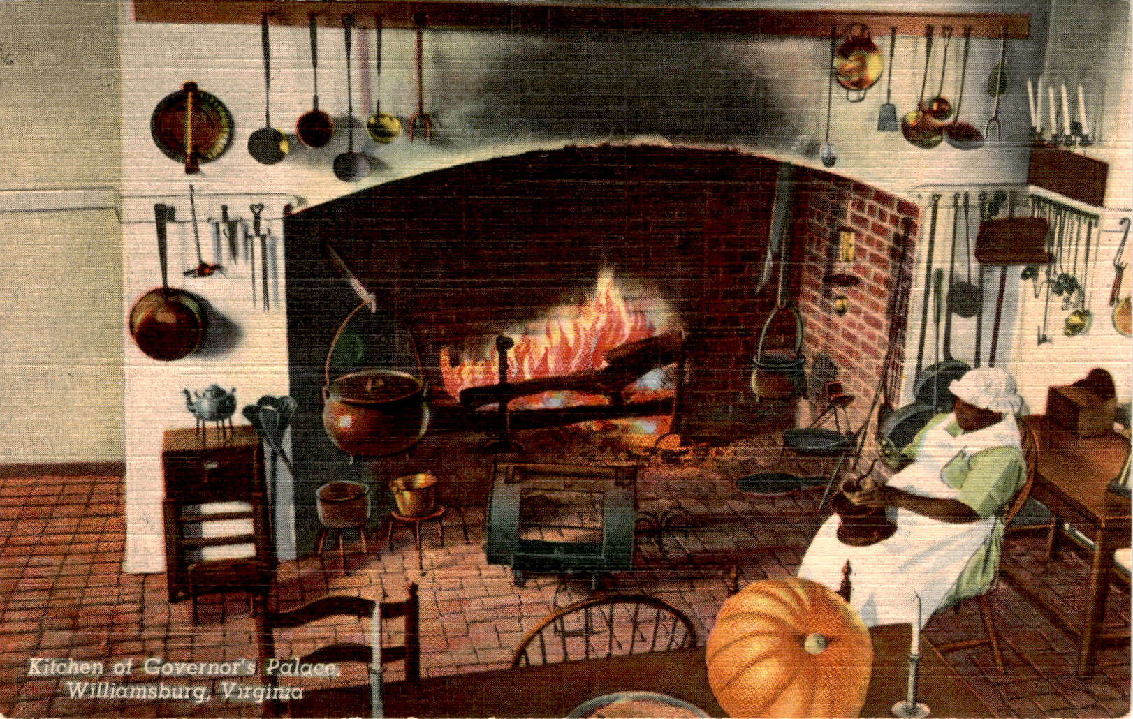 The postcard features the kitchen of the Governor’s Palace in Williamsburg, Virginia. The palace, constructed between 1706-1718, served as the residence for royal governors and was a hub of social activity in the Virginia colony. It has been reconstructed on its original foundations, including its outbuildings. Williamsburg is known for its well-preserved colonial-era buildings and is a popular tourist destination for those interested in American history. The Governor’s Palace is a significant historical site that offers insights into the colonial past of Virginia and the role of governors during that period.