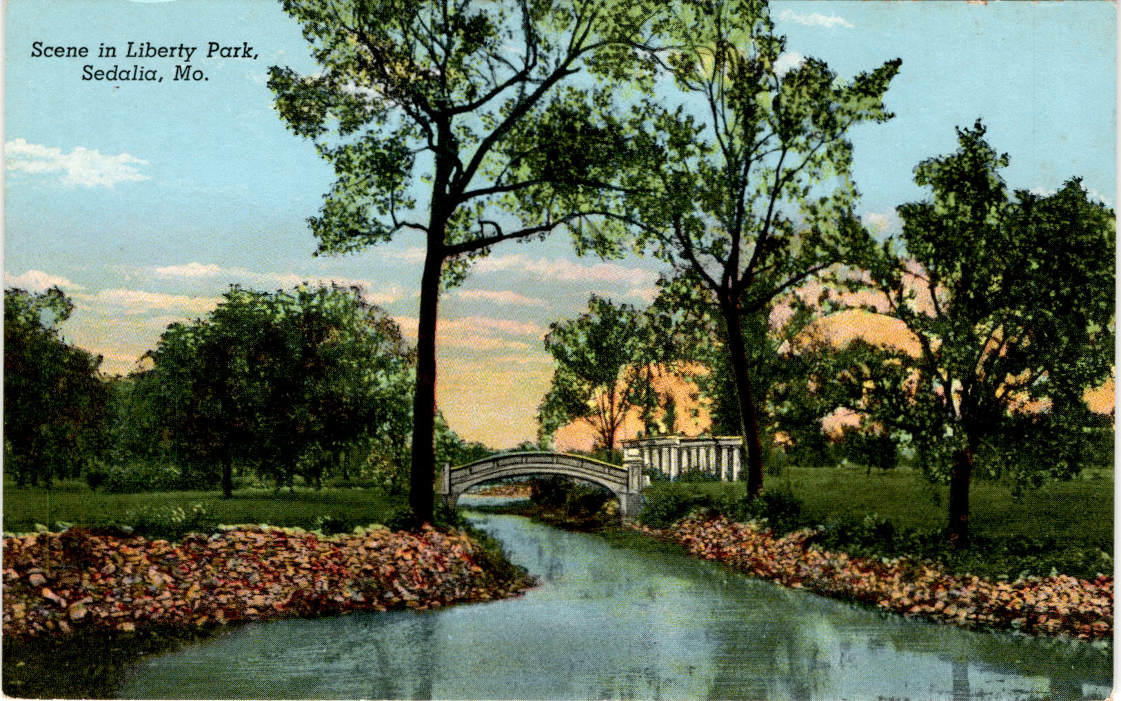 The postcard depicts a scene in Liberty Park in Sedalia, Missouri. Distributed by Central News Agency, it is a genuine Curteich-Chicago C.T. American Art postcard. The park is a popular recreational area known for its beautiful landscapes, walking trails, and playgrounds. Sedalia is a historic city in Missouri, famous for hosting the Missouri State Fair, which is one of the oldest and largest fairs in the United States. The postcard is a collectible item that showcases the natural beauty and attractions of Sedalia.