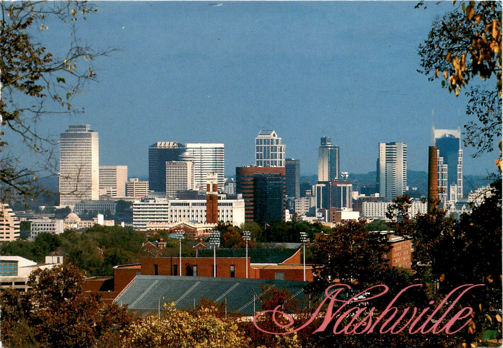 Back of PostcardThe postcard features a photo of Nashville, Tennessee, taken by Werner J. Bertsch. The sender mentions having dinner with someone named Lynn and visiting a place called the Cracker Barrel. The postcard also references Milan, Italy, and Pittsburgh, Pennsylvania. Nashville is known for its country music scene, including the Grand Ole Opry and Country Music Hall of Fame. Milan is famous for its fashion and design, while Pittsburgh is known for its steel industry and sports teams. The postcard captures a mix of travel experiences and personal interactions.