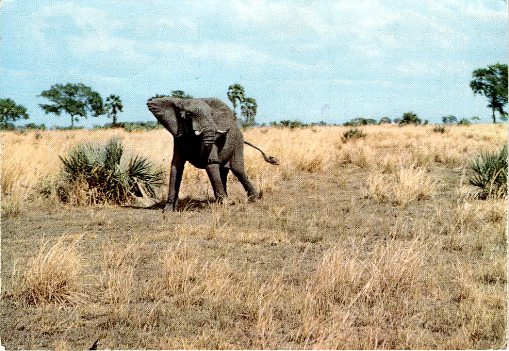 The postcard was sent from Gorongosa, Mozambique, in 1972. The sender mentions skipping Lourenço Marques (now Maputo) and the long docking times at ports. They express excitement about seeing live animals like butterflies and a squirrel. The sender plans to visit a park in Beira and mentions heading to Dar es Salaam next.