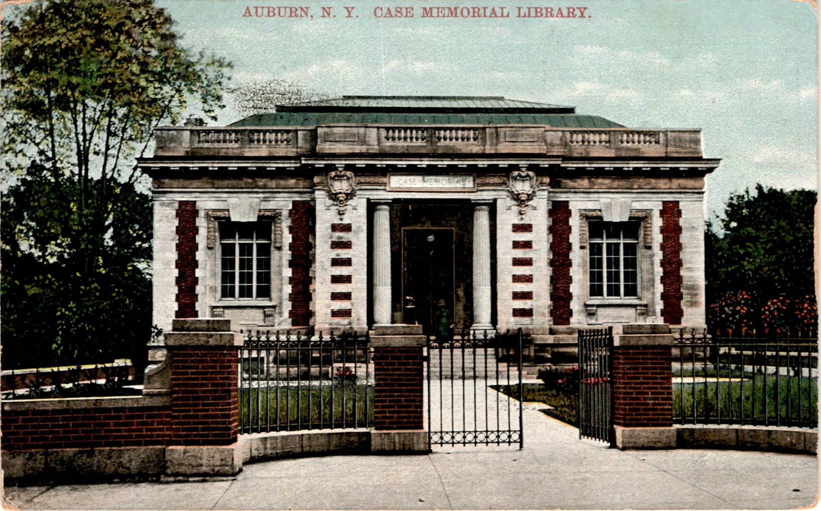 The postcard is from Auburn, N.Y., mentioning the Case Memorial Library. The sender, possibly named Louise, is writing to someone named Mrs. S. E. Lubles in Rantoul, Illinois. The postcard discusses various personal matters, including a gift that was given to someone else, a visit to Kirkpatricks, the health of Mrs.