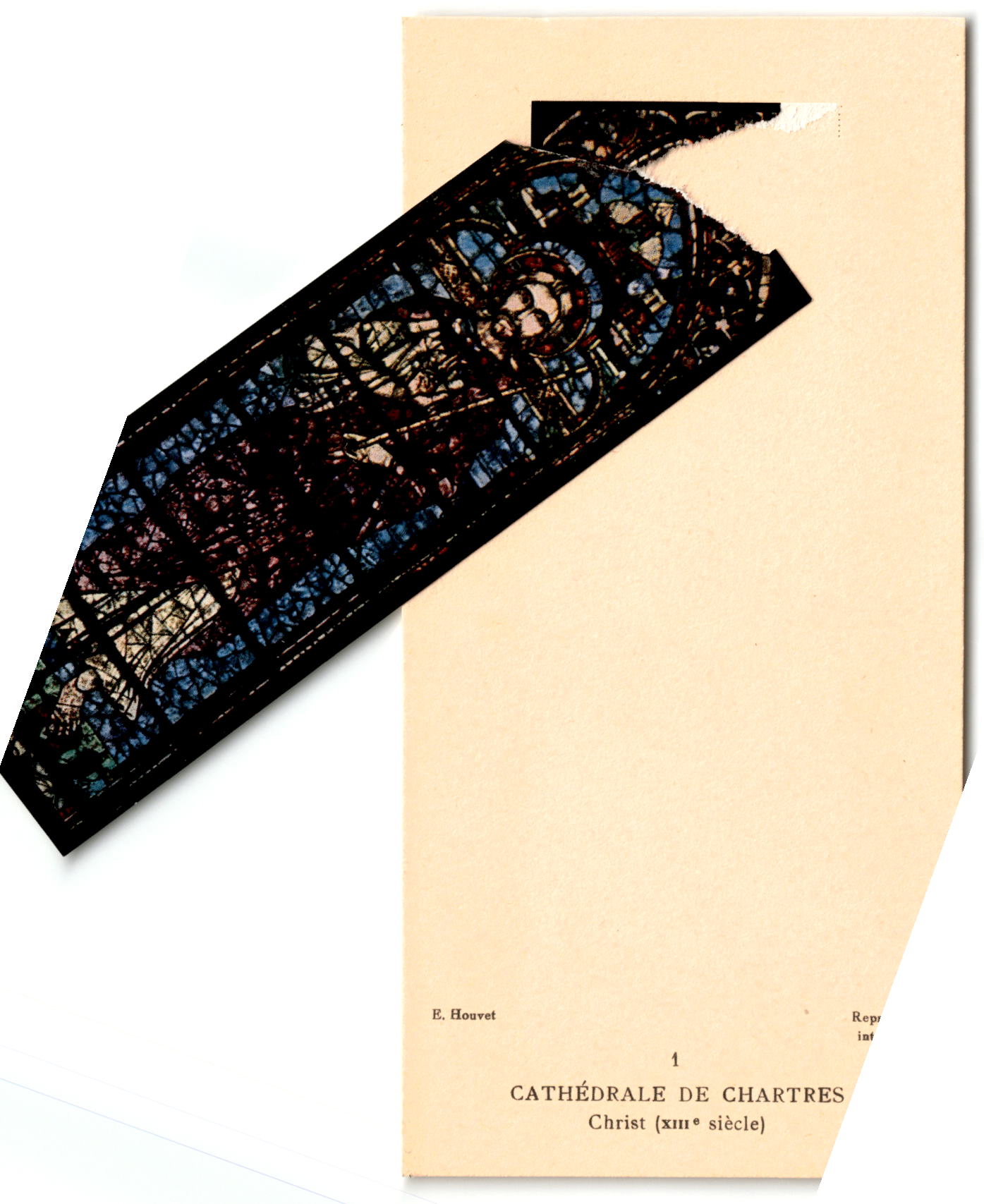 The postcard features a representation of Christ from the 12th century located in the Cathedral of Chartres. The Cathedral of Chartres is a medieval Catholic cathedral located in Chartres, France. It is considered one of the finest examples of French Gothic architecture and is a UNESCO World Heritage Site.