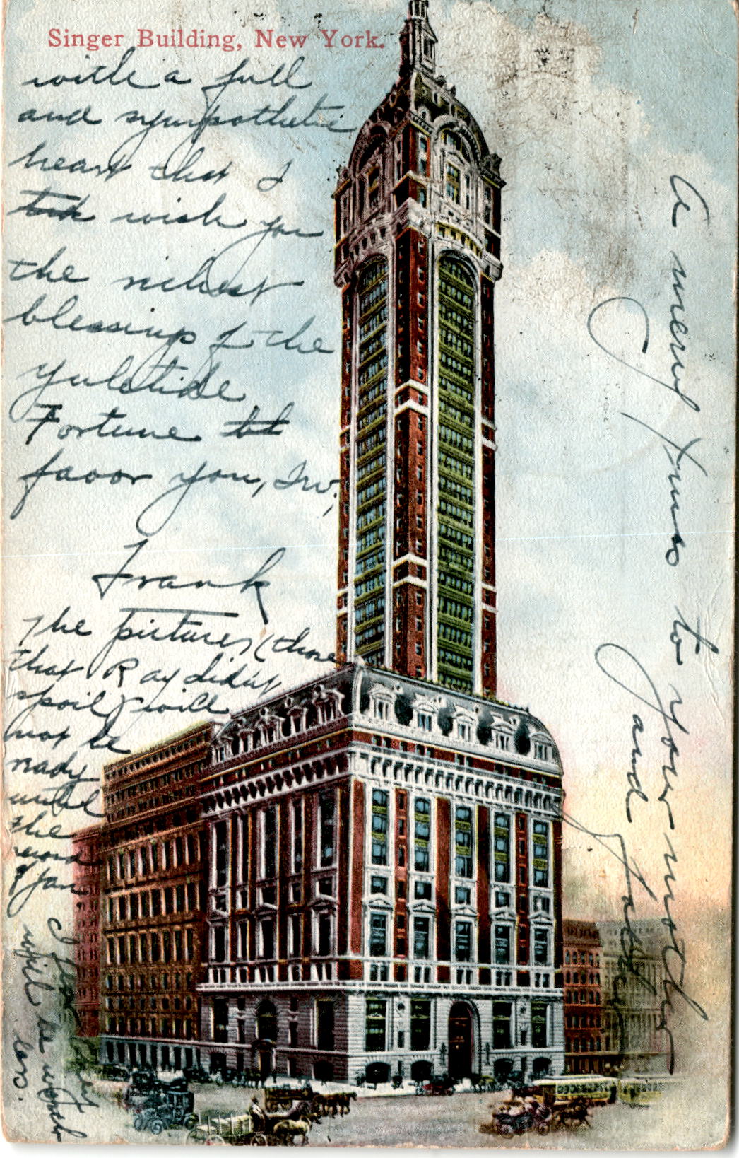 Singer Building, New York, Jand, Fuldtide Fortune, Su Frank, Boston, Postcard