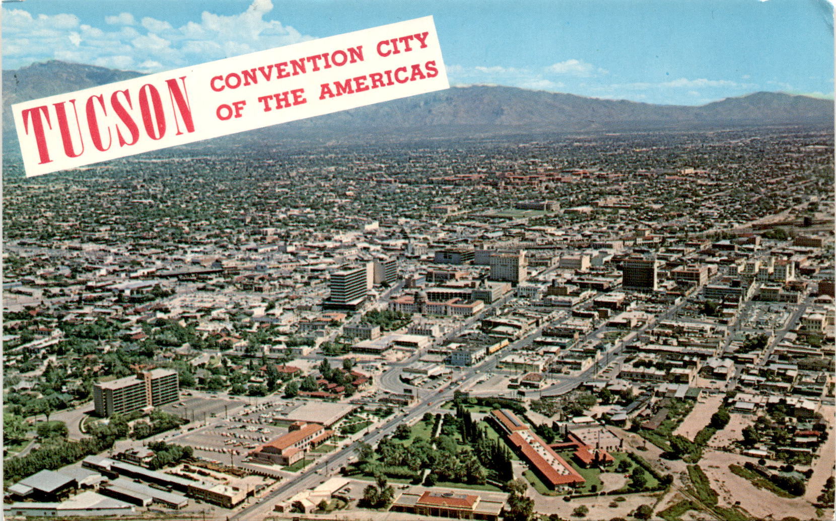 The postcard mentions Tucson as a Convention City of the Americas. Tucson is a city in the state of Arizona, USA. It is known for its beautiful desert landscapes, vibrant arts scene, and rich cultural heritage. Tucson is home to the University of Arizona and offers a variety of outdoor activities like hiking and biking in the nearby mountains and canyons.