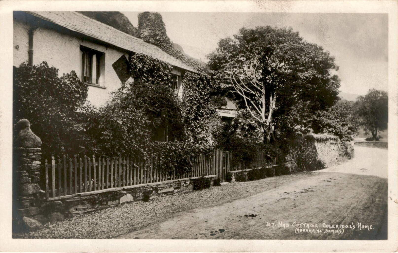 Back of PostcardThe postcard features a picture of Na Cottage, the home of Samuel Taylor Coleridge and his father. Coleridge was a well-known English poet and philosopher. He is often associated with the Romantic movement in literature. Coleridge’s son, Hartley Coleridge, also lived in Na Cottage at one point.