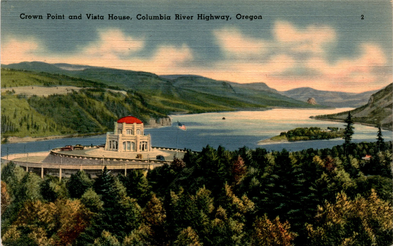 Crown Point, Vista House, Columbia River Highway, Oregon, Cross & Postcard