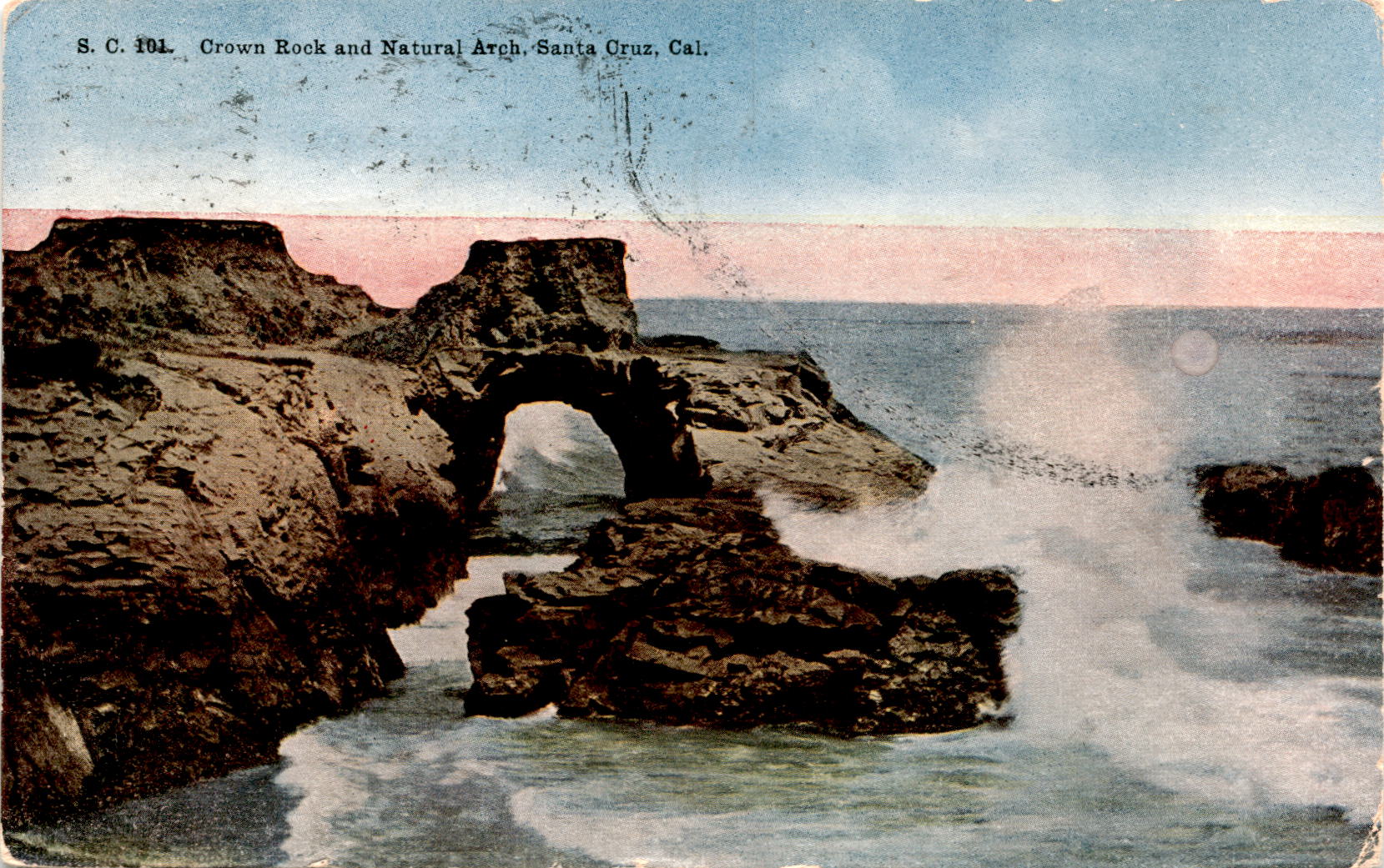 Crown Rock, Natural Arch, Santa Cruz, Cal, Big Curio Store, Mrs. W Postcard