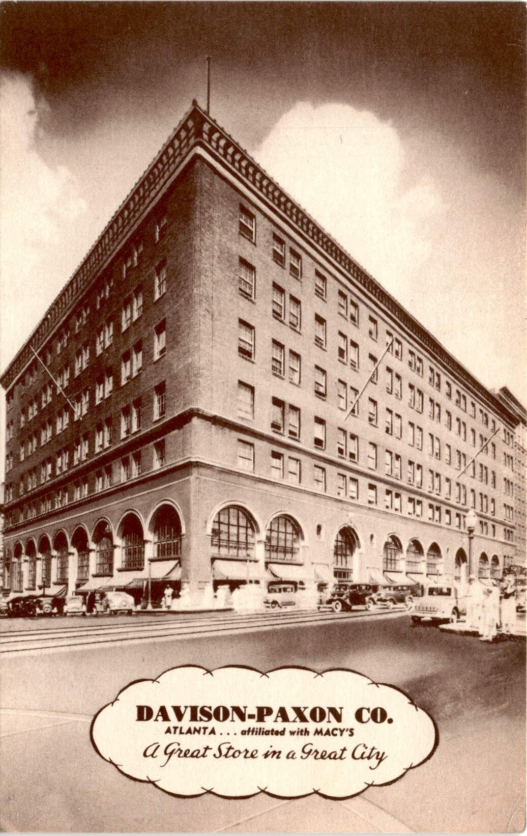 The postcard advertises the Davison-Paxon Company in Atlanta, which is affiliated with Macy’s. The store is described as a Great Store in a Great City. Davison-Paxon was a department store in Atlanta, Georgia, known for its high-quality merchandise and excellent customer service.