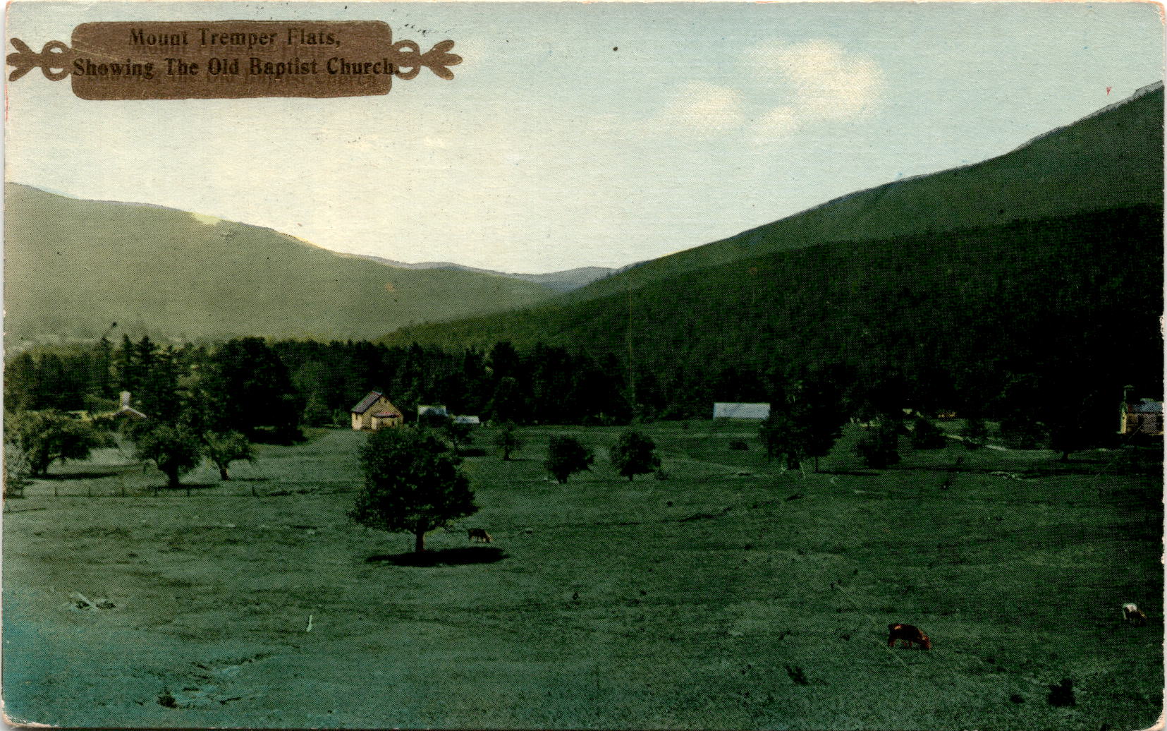 The postcard features an image of the Old Baptist Church in Mount Tremper Flats, Kingston, New York. Mount Tremper is a small hamlet located in the town of Shandaken in Ulster County, New York. The Old Baptist Church is a historic building in the area, reflecting the town’s heritage and architecture.