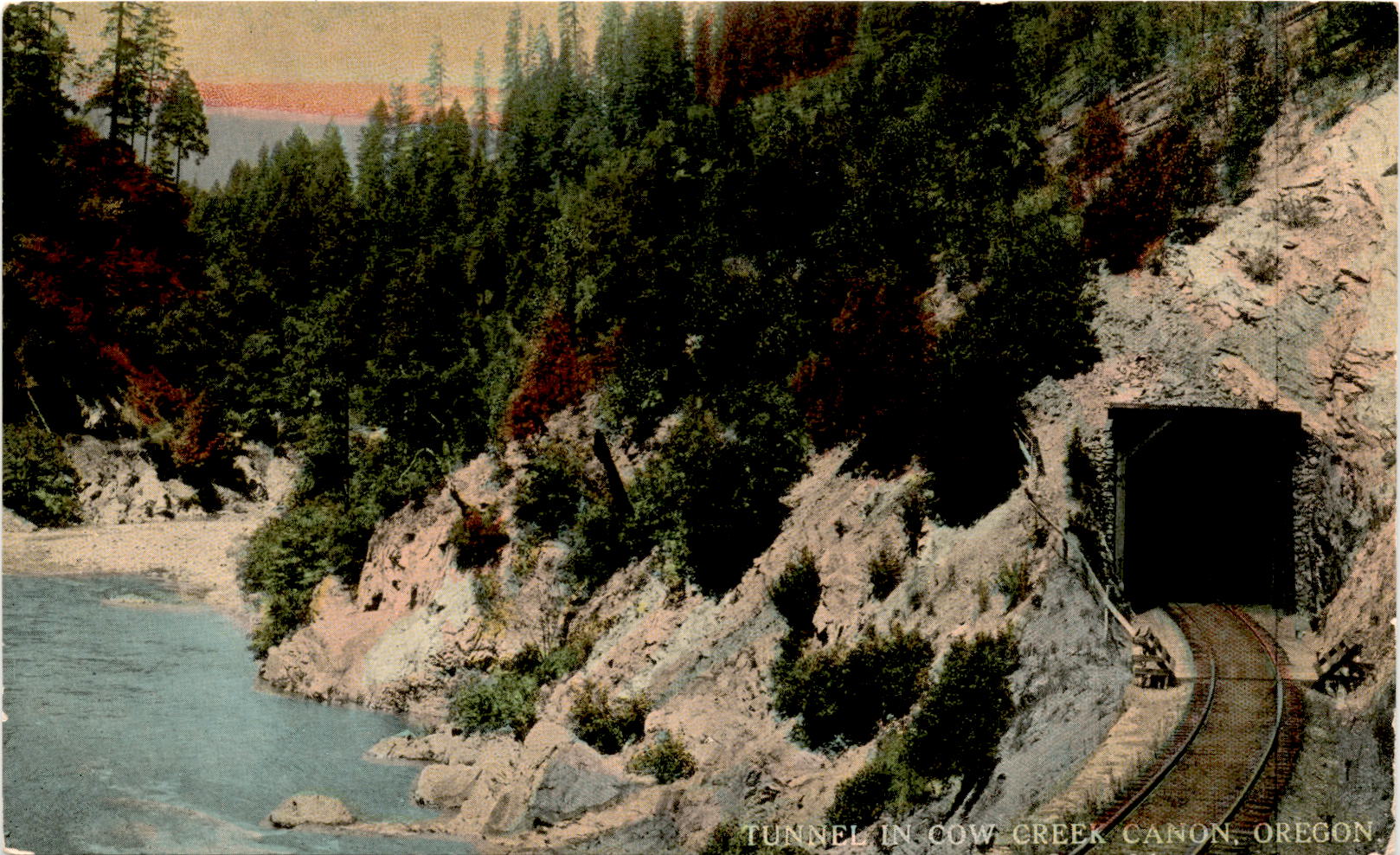 The postcard features a tunnel in Cow Creek Canyon, Oregon, published by the Portland Post Card Co. The tunnel is a notable landmark in the region, known for its unique geological formations and scenic beauty. Cow Creek Canyon is located in southern Oregon and is a popular destination for outdoor enthusiasts, offering opportunities for hiking, camping, and wildlife viewing.The Portland Post Card Co.