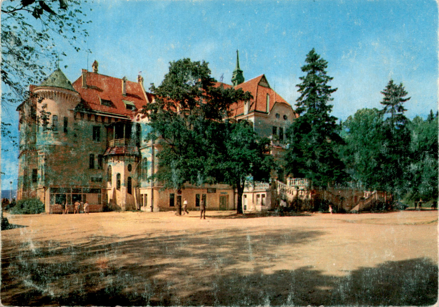 Back of PostcardThe postcard features a photo of Hotel Krakonoš in Mariánské Lázně, a famous spa town in the Czech Republic. Mariánské Lázně, also known as Marienbad, is known for its natural hot springs and beautiful architecture.