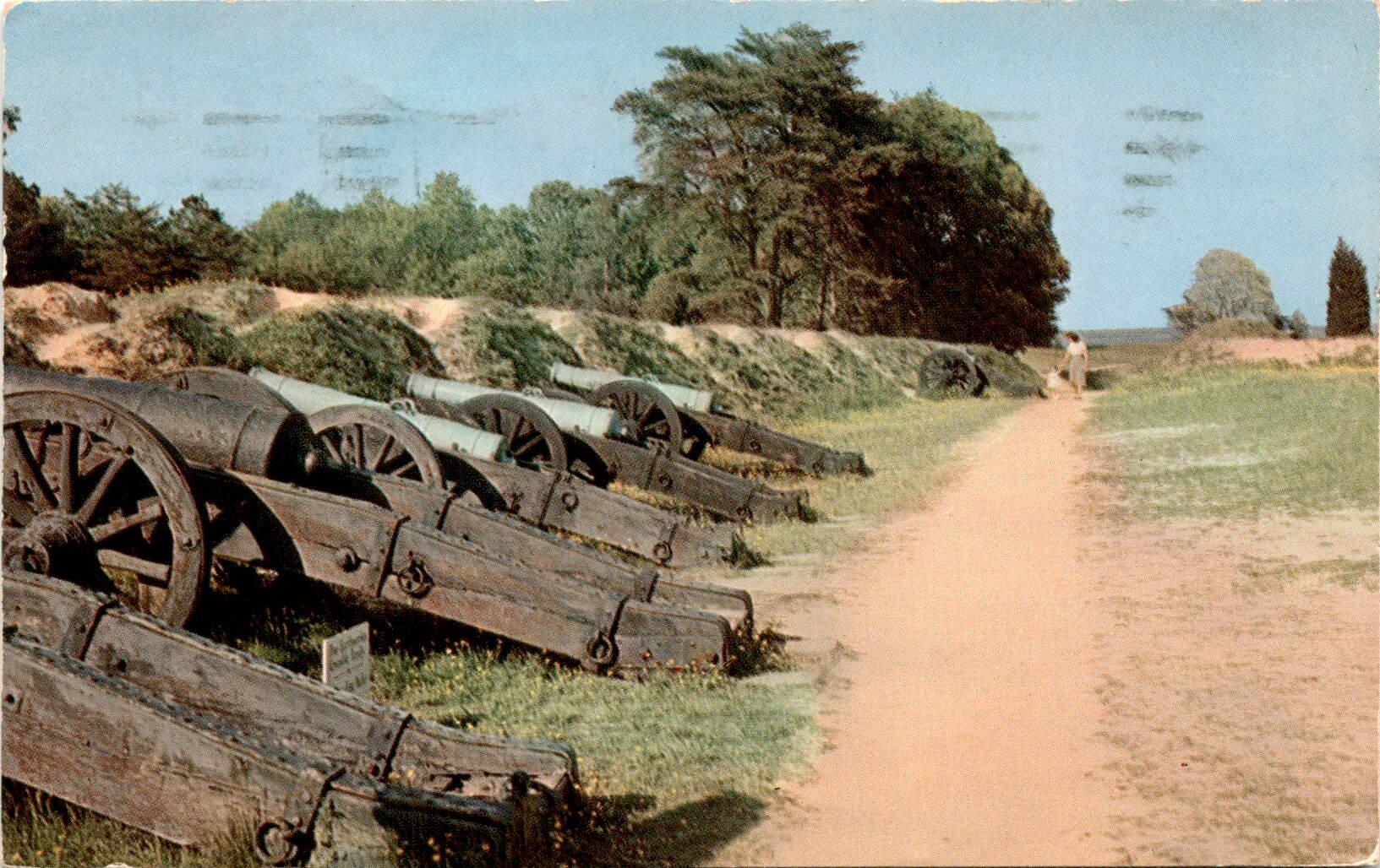 The front of the postcard features an image of the Redoubts at Yorktown Battlefield in the National Military Park in Yorktown, Virginia. The postcard is from 1960 and was published by General Sales Service in Roanoke, Virginia. The image showcases historical fortifications from the famous Battle of Yorktown, a pivotal battle during the American Revolutionary War.