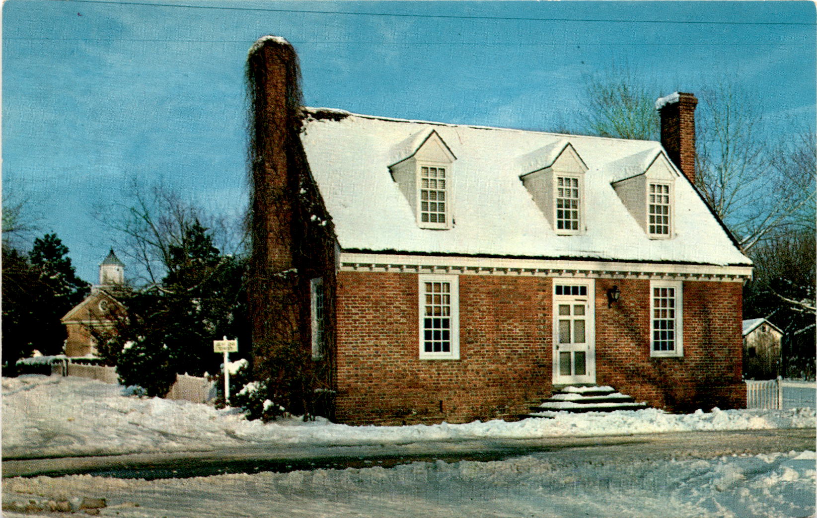 The postcard features the Somerwell House in Yorktown, Virginia, believed to have been built before 1707 by the Somerwell family. The house is located at the corner of Church and Main Streets. Grace Episcopal Church, constructed around 1697, can be seen in the left background of the image. The postcard was published by Walter H.