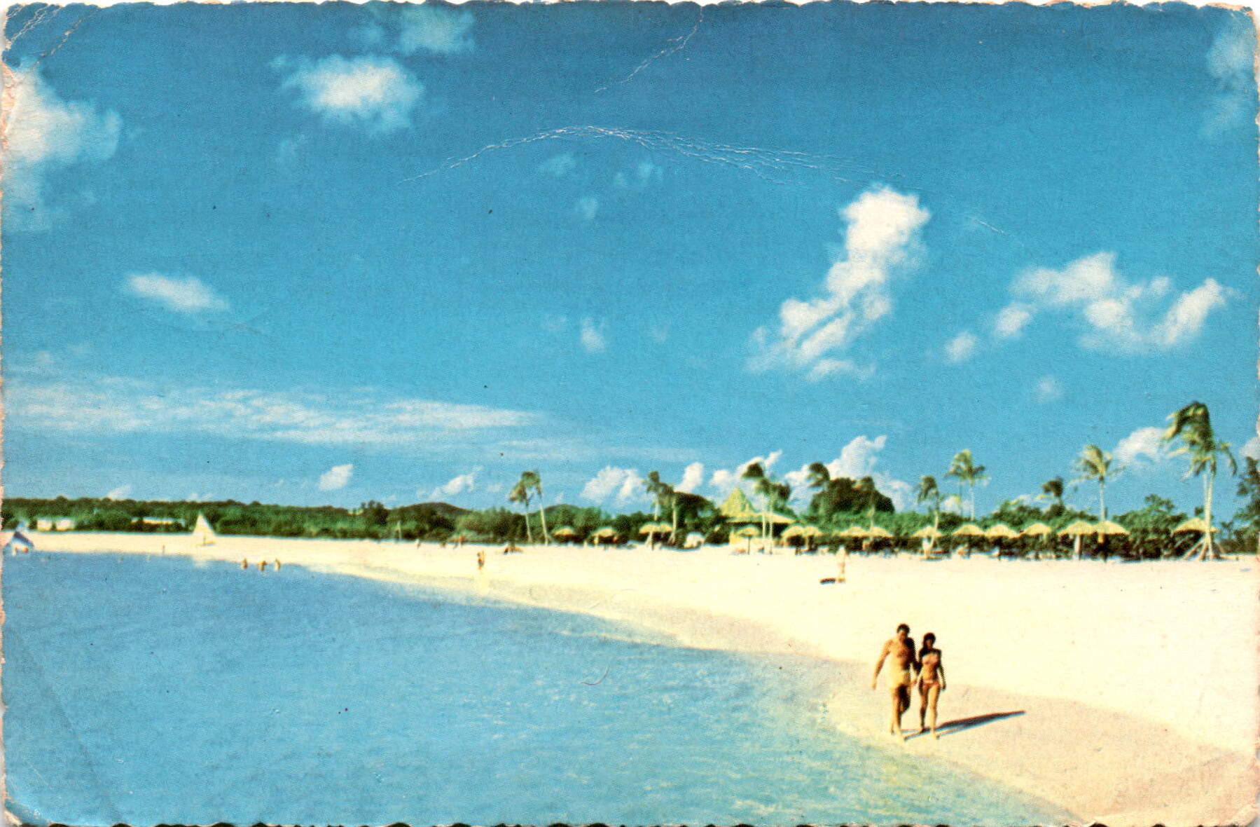 The postcard is dated April 24, 1973, and is addressed to someone named Cunt Masy. The sender, Barbara, is at Mullet Bay Beach Hotel in St. Maarten, Netherlands Antilles. The postcard describes the half-mile white sand beach of Mullet Bay, surrounded by green hills and a clear blue sky.