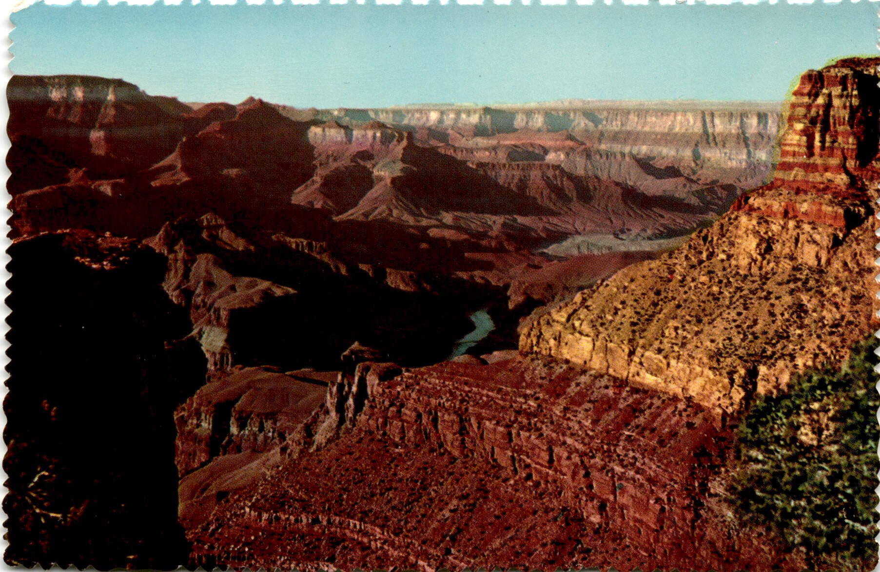 The postcard features a view from Moran Point in Grand Canyon National Park, Arizona. The point is named after Thomas Moran, a renowned artist and pioneer painter of the Canyon. Moran’s paintings of the Grand Canyon captured its astonishing beauty and coloring under full sunshine. Verkamp’s, Inc.