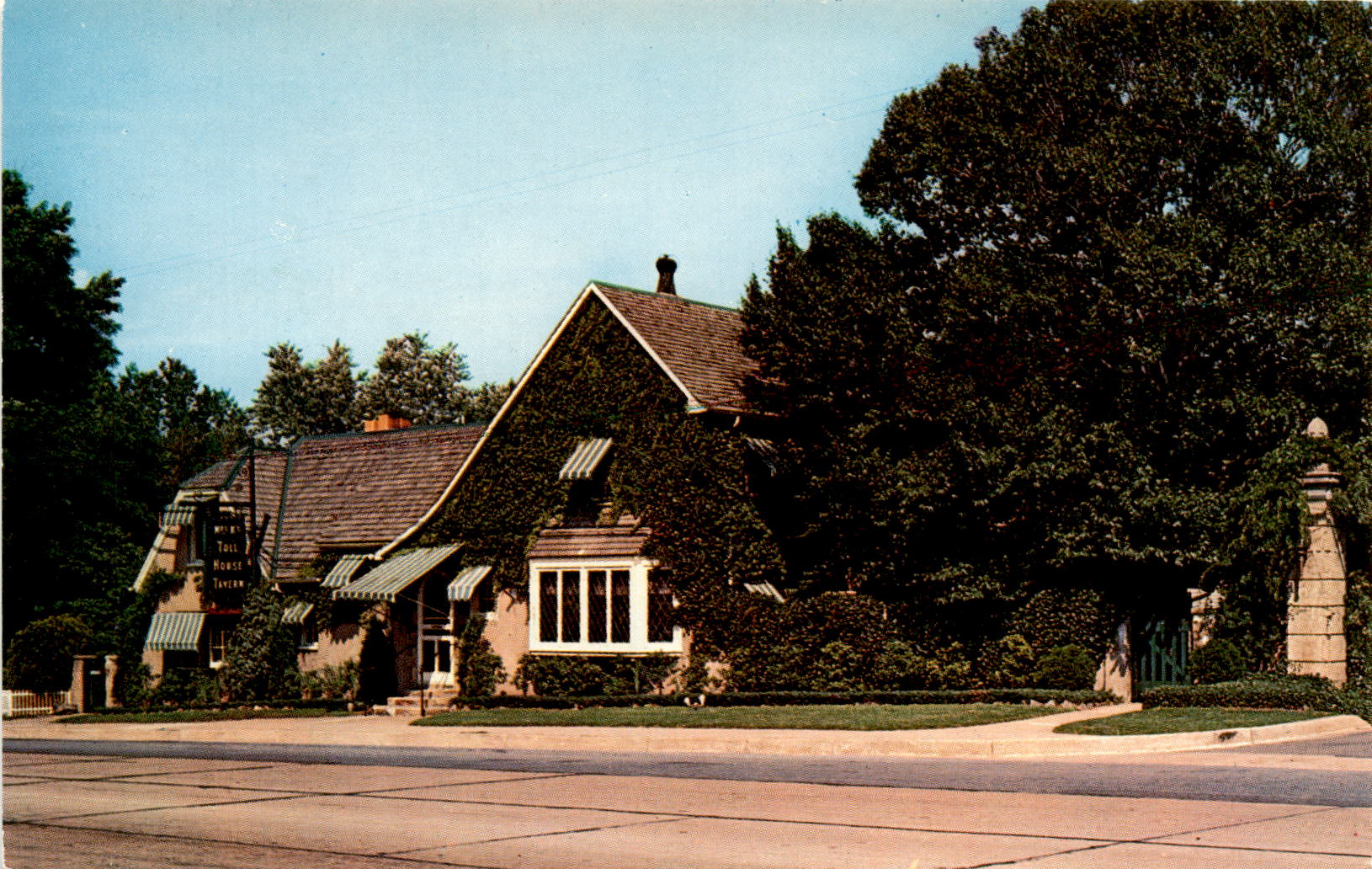 The postcard advertises Mrs. K’s Toll House, located in Silver Spring, Maryland, just 30 minutes from the White House. It is described as a tavern on U.S. Route 29, known for serving good substantial American food. In addition to its food, Mrs.