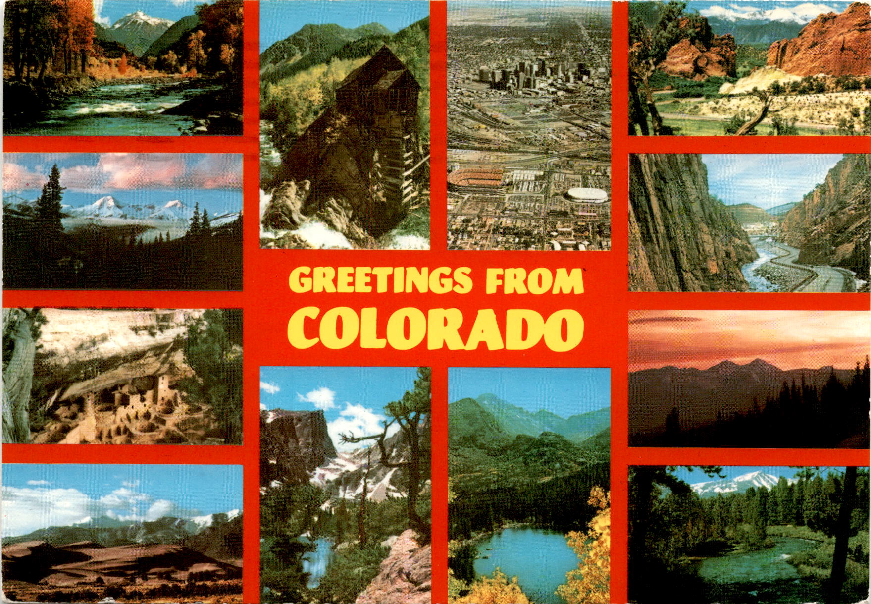 The postcard is a greeting from Colorado, dated July 18, 1984, sent by Wesley Miller and Miro L. Stevens. The message mentions being in the mountains at Dick’s Cottage, experiencing great views but finding the altitude challenging.