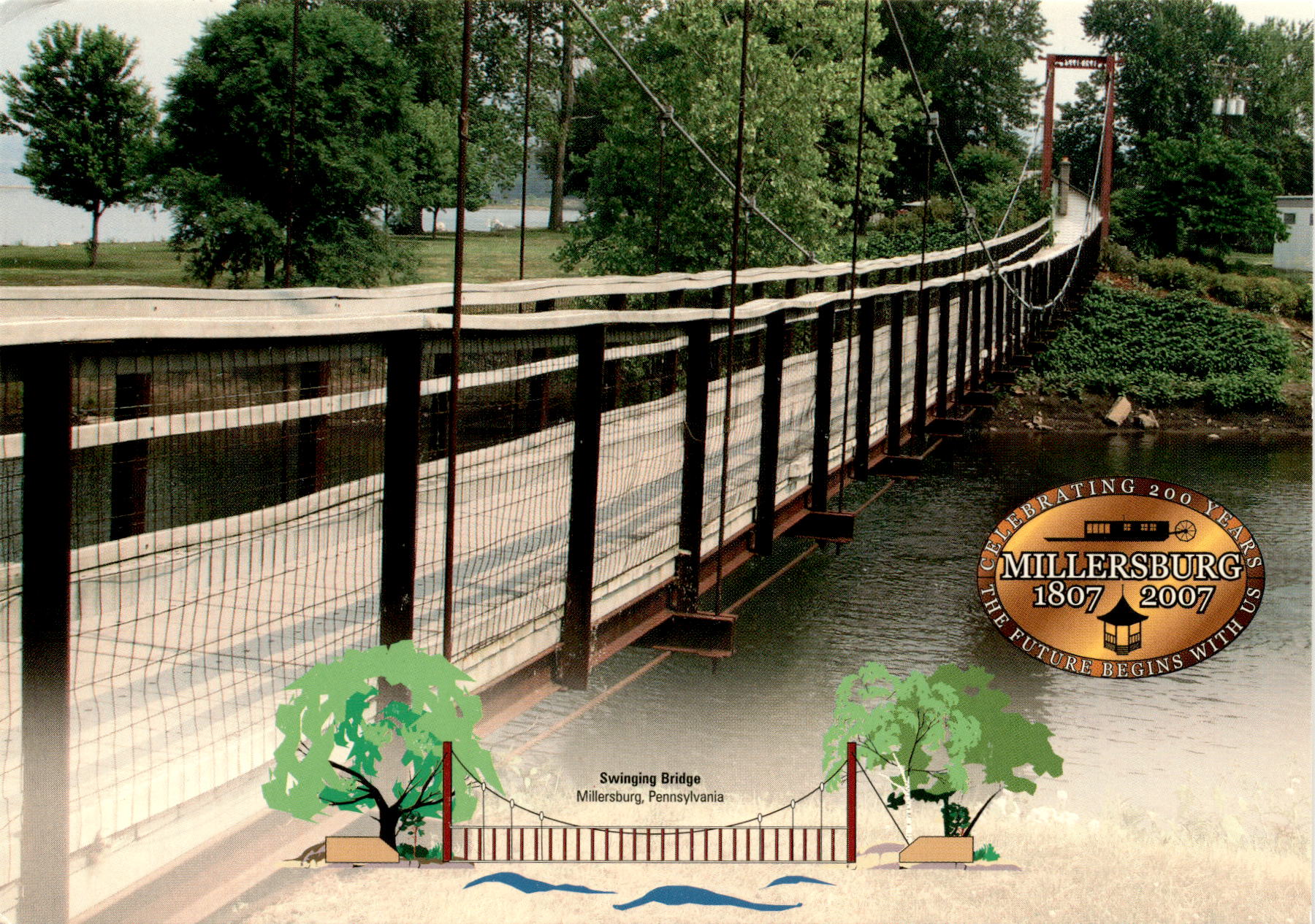 Swinging Bridge, Millersburg, Pennsylvania, 200 years, Millersburg, 180 Postcard