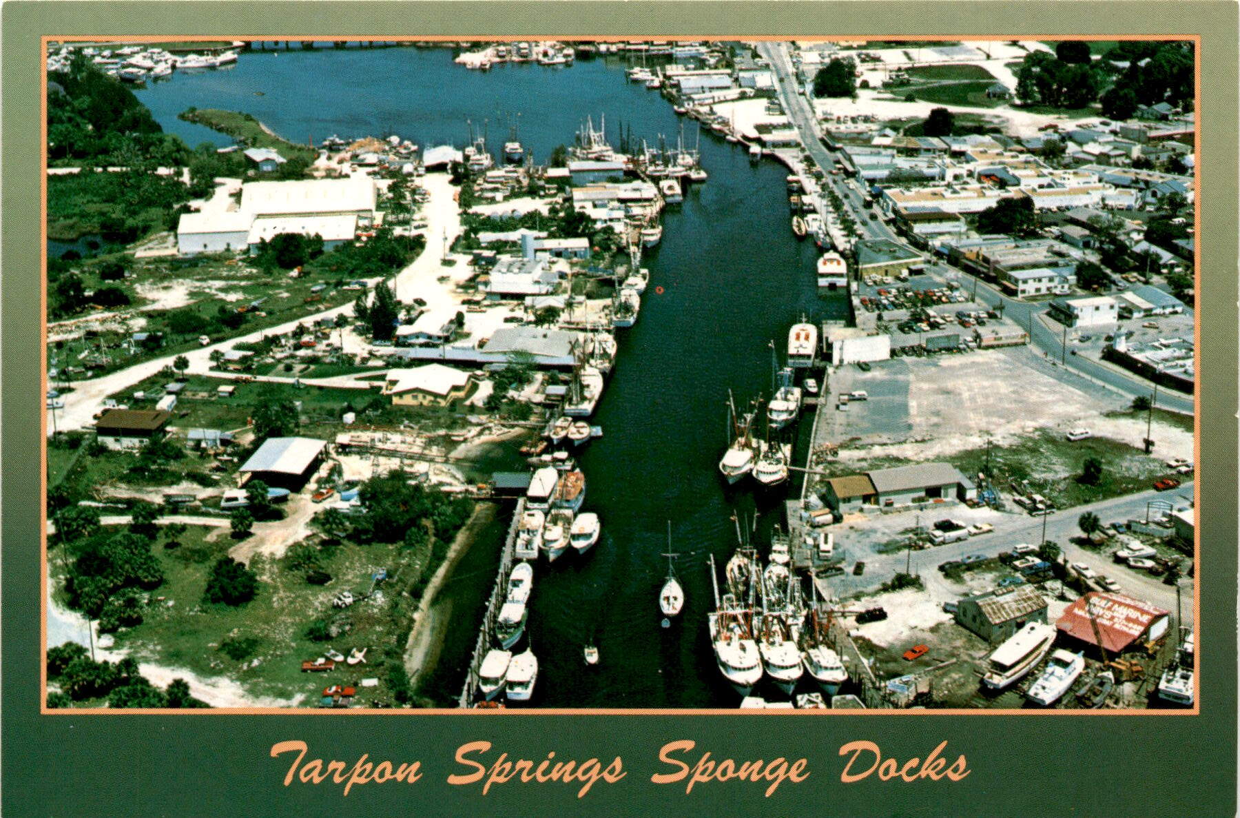 Back of PostcardThe postcard features an image of the Tarpon Springs Sponge Docks, a popular attraction in Tarpon Springs, Florida. Tarpon Springs is known for its sponge fishing industry, and the docks are where boats unload their harvested sponges. The postcard also highlights the famous Louis Pappas’ Restaurant located in the area, along with many shops and other restaurants.