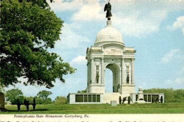 The postcard features the Pennsylvania State Monument located at the Gettysburg Battlefield in Pennsylvania. The monument is dedicated to the 35,000 Pennsylvanians who participated in…