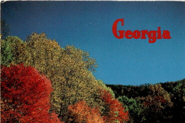 The postcard features a photograph taken by Steve Yost showcasing the beautiful autumn scenery in Georgia. The image captures the spectacular colors of fall foliage…