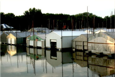 Boathouse Reflections, Mississippi River, Red Wing MN, Theodore J Horn. Postcard