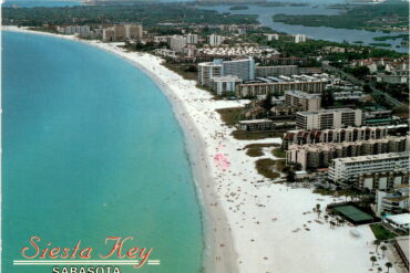 The postcard features a photo of Siesta Key, a popular destination in Sarasota, Florida known for its white sand beaches. The sender, Lee, mentions a…