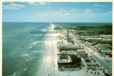 This postcard features an aerial view of Endiciana in Panama City Beach, Florida, looking west along the Miracle Strip. The photo was taken by Bob…
