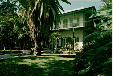 The postcard features the Ernest Hemingway House located at 907 Whitehead Street in Key West, Florida. The house was built in 1851 by Asa Tift…