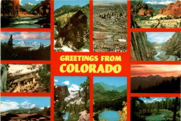 The postcard is from Vail, Colorado, a popular ski resort town known for its picturesque beauty and affluent visitors. The sender mentions the town being…