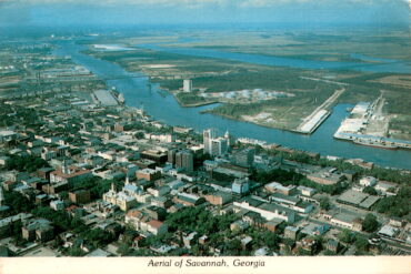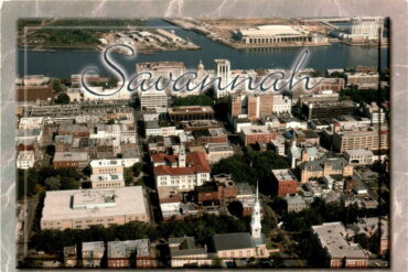 The postcard features a photo of Savannah’s Historic District, known for its gentler era and historical significance. Savannah was founded in 1733 by General Oglethorpe,…