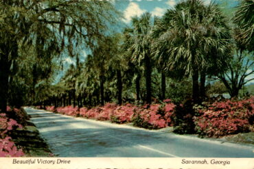The postcard features a picture of Victory Drive in Savannah, Georgia, which is part of U.S. Highway 80. Victory Drive was built as a memorial…