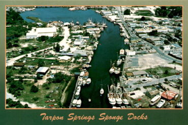 The postcard features an image of the Tarpon Springs Sponge Docks, a popular attraction in Tarpon Springs, Florida. Tarpon Springs is known for its sponge…