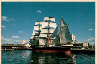 The postcard features a photo of the Star of India, a historic ship launched in 1863, which is now a maritime museum in San Diego,…